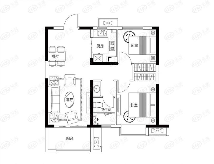 79平的2室2厅1卫,分布于中间户,算是市面上比较少的小户型。
