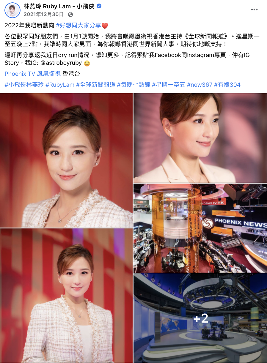 林燕玲在社交媒体公布自己加入凤凰卫视香港台🎉