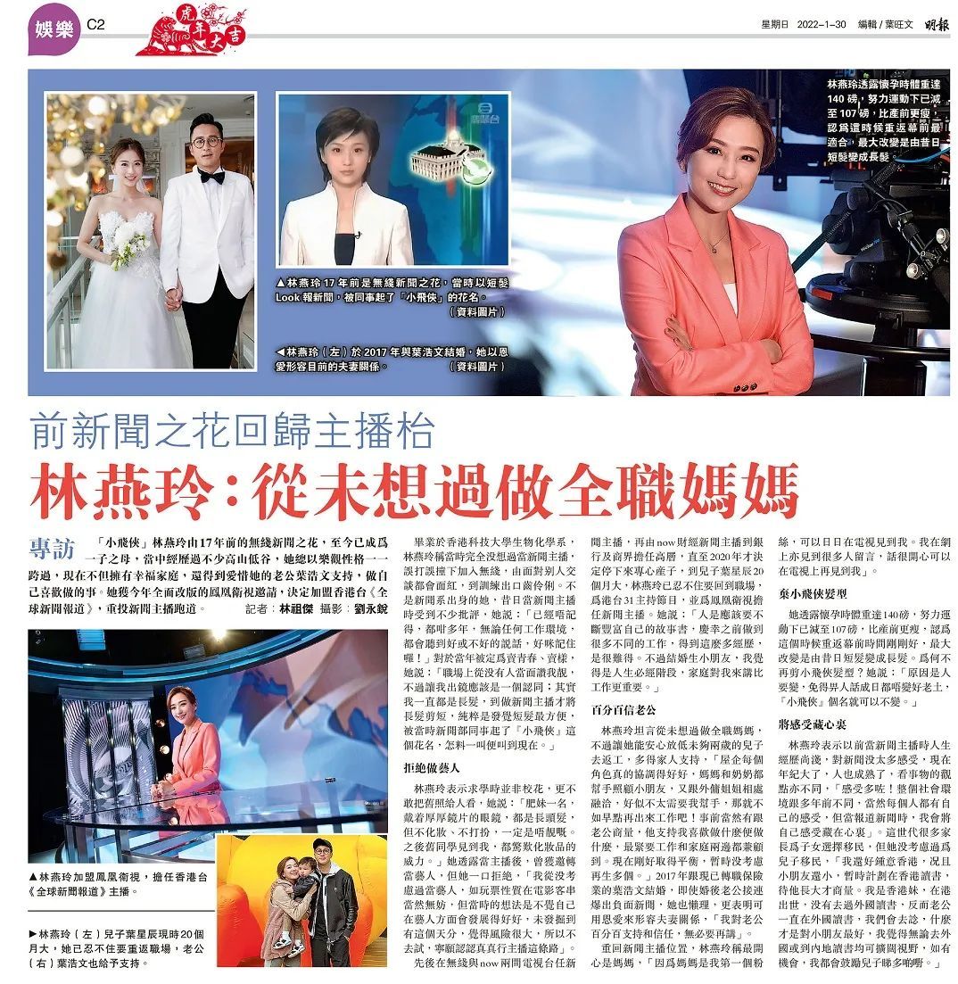林燕玲直言以前当新闻主播时,人生经历尚浅,对新闻不是有太多感受,现在年纪大了,人也成熟了,看事物的观点亦不同,她说:“感受多咗!整个社会环境与多年前不同,当然每个人都有自己的感受,但当报道新闻时,我会将自己感受藏在心里面。”这世代很多家长为了子女选择移民,问到可曾考虑过为儿子移民?她即道:“冇!我重好钟意香港,况且小朋友还小,暂时计划在香港读书,将来待他长大才商量。我是香港妹,在港出世,没有去过外国读书,反而老公就一直在外国读书,我们会去谂,什么才是对小朋友最好,我觉得无论去西方国家或内地读书,均可以扩阔视野,如有机会,我都会鼓励儿子睇多啲嘢。”