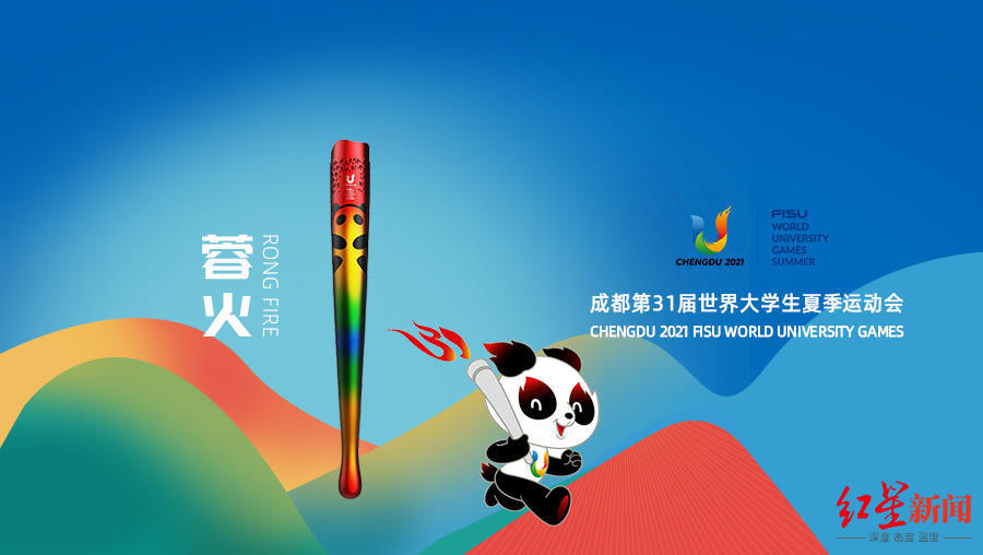 “蓉火”取意成都的简称“蓉”, “蓉火”又寓“融合”之意。火炬运用炫彩的大运会主题四色——朱红、明黄、翠绿、湖蓝,自成一体,体现了“绿色、智慧、活力、共享”的成都大运会办赛理念。
