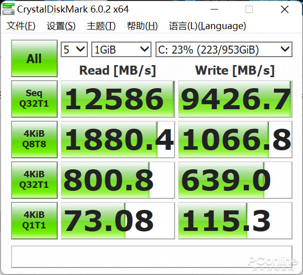 在硬盘方面,掠夺者刀锋500SE采用了两块1TB PCIe SSD组建RAID 0,通过CrystalDiskMark测试,数据已经达到了5位数,读取速度为12586MB/s、写入速度9426.7MB/s,这也是目前比较少见的组建RAID 0的笔记本,对于对性能要求较高的用户来说,非常适用。