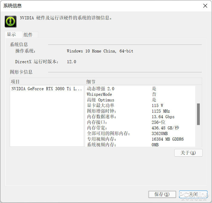 根据NVIDIA控制面板中所识别的硬件信息,我们看到它所搭载的RTX 3080Ti笔记本电脑GPU最大功率设置为115W。考虑到机身轻薄的设计,也在情理之中。