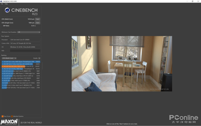 在渲染测试方面,通过R23的测试,单线程1865pts,多线程18145pts。