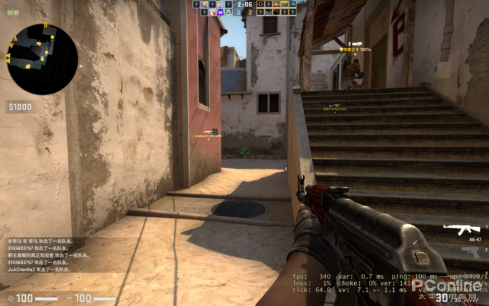 在面对双方交战、大量角色堆积、烟雾/闪光/燃烧瓶这类道具特效中,游戏的帧数依旧可稳定在300FPS以上,在残局中,更有逼近400FPS的水平,充分发挥了240Hz,2.5K屏幕的优势。