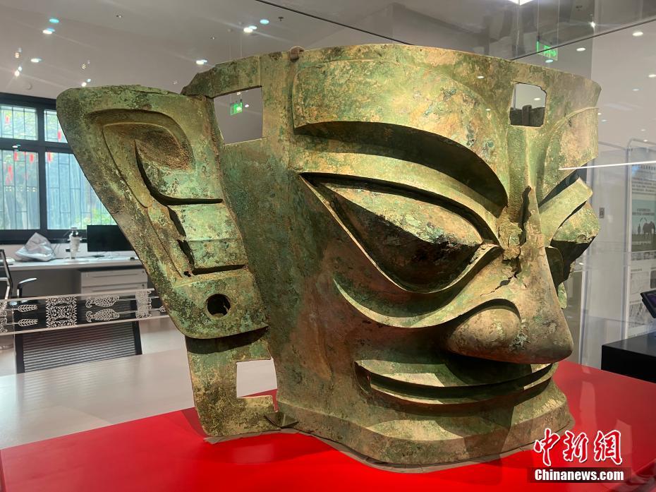 三星堆青铜大面具在三星堆博物馆首次正式展出。尧欣雨 摄