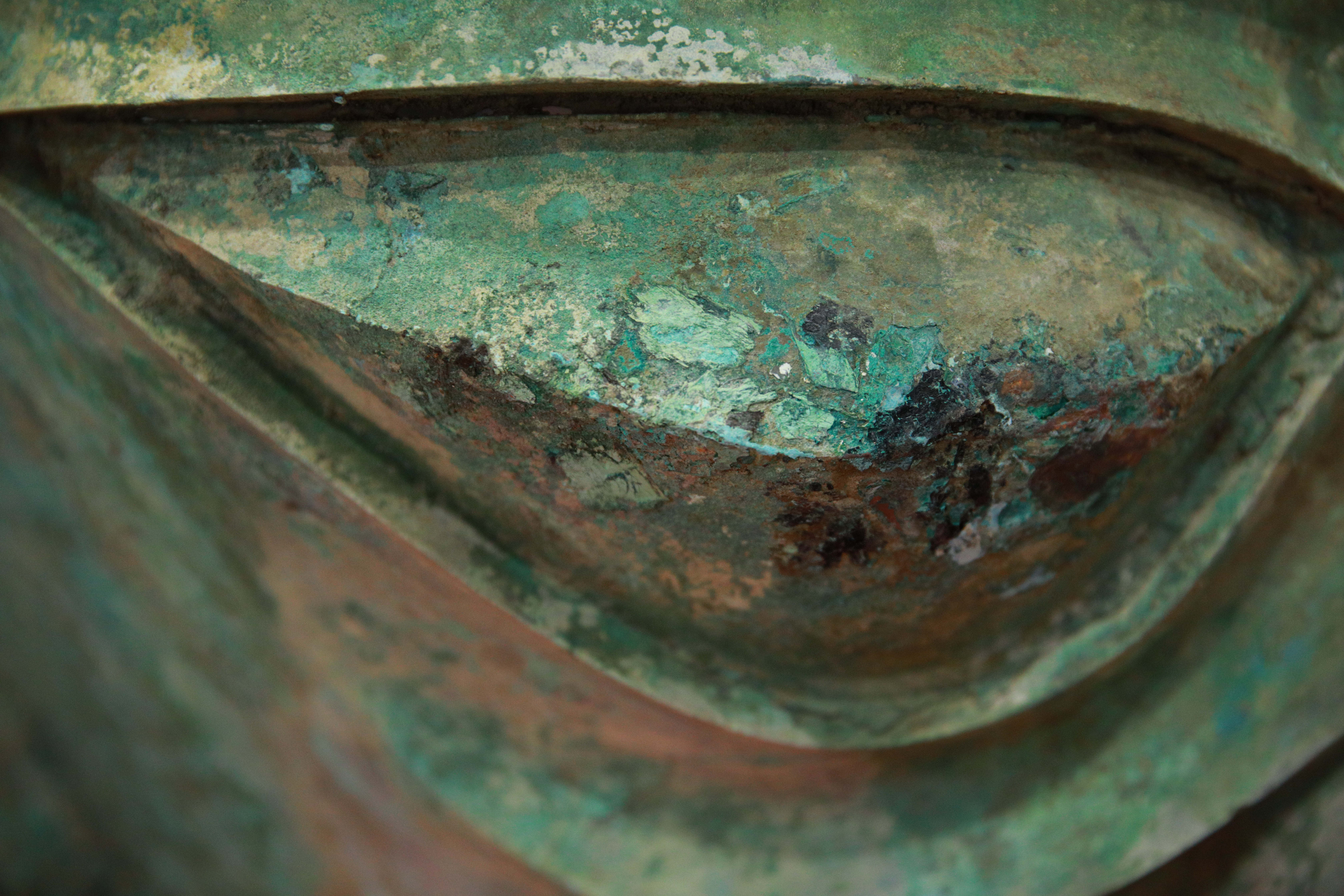 2021年6月,这件青铜大面具出土于三星堆遗址的3号“祭祀坑”。青铜大面具宽131cm、高71cm、深66cm,重131斤,是目前已知三星堆遗址出土的体量最大、保存状况完好的大型青铜面具。青铜大面具是三星堆文化典型器物,距今已有3000多年,体现了古蜀先民对自然万物与人神世界的理解与思考。
