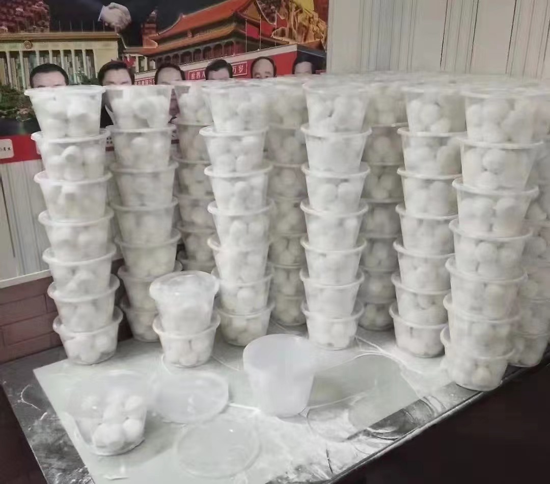 在元宵节,王瑞美一家的汤圆店里,汤圆被码放得很高。受访者供图