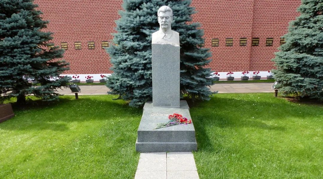 但是这样的展览对斯维特兰娜是一种极大的伤害,她永远忘不了父亲离她而去时的痛苦模样,更无法接受父亲的遗体在一个展厅里供人们参观,她认为那个展厅就是一个荒唐的存在。8年后的1961年,斯大林已经彻底失去了光环,在那年10月31日的夜里,斯大林的遗体被搬出列宁墓,葬在克里姆林宫围墙下的苏联领导人墓地内,墓碑上的内容符合现在流行的极简主义风格:“约瑟夫·维萨里奥诺维奇·斯大林,1878—1953”,这位曾经呼风唤雨的政治巨头,最后也像普通人一样,变成了泥土下面的一具骸骨。