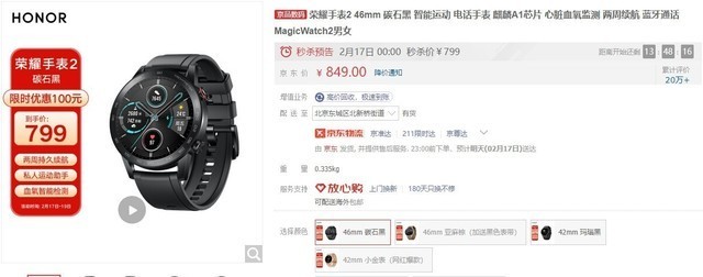 HONOR 荣耀 MagicWatch 2 运动款 智能手表 46mm目前活动售价849元,明日(17日)秒杀价799元,性价比非常不错,有需要的小伙伴儿可以关注一下。