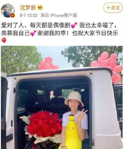 不知道是不是因为见到了沈梦辰的喊话,杜海涛成功开窍了。网上流传出杜海涛送大G和用拖车拉玫瑰,向沈梦辰求婚。而从沈梦辰开心晒这些照片来看,应该是见到自己喜欢的人终于向自己求婚,笑得嘴巴都合不拢,更是直言「爱对了人,每天都是偶像剧」。