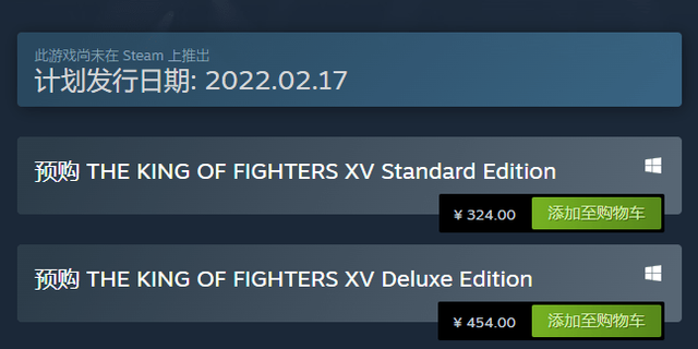 《拳皇 15》标准版 Steam 国区售价 324 元,豪华版售价 454 元。PS4 国行标准数字版和实体版售价均为 299 元人民币;PS5 国行标准数字版售价为 299 元人民币,标准实体版售价为 349 元人民币。