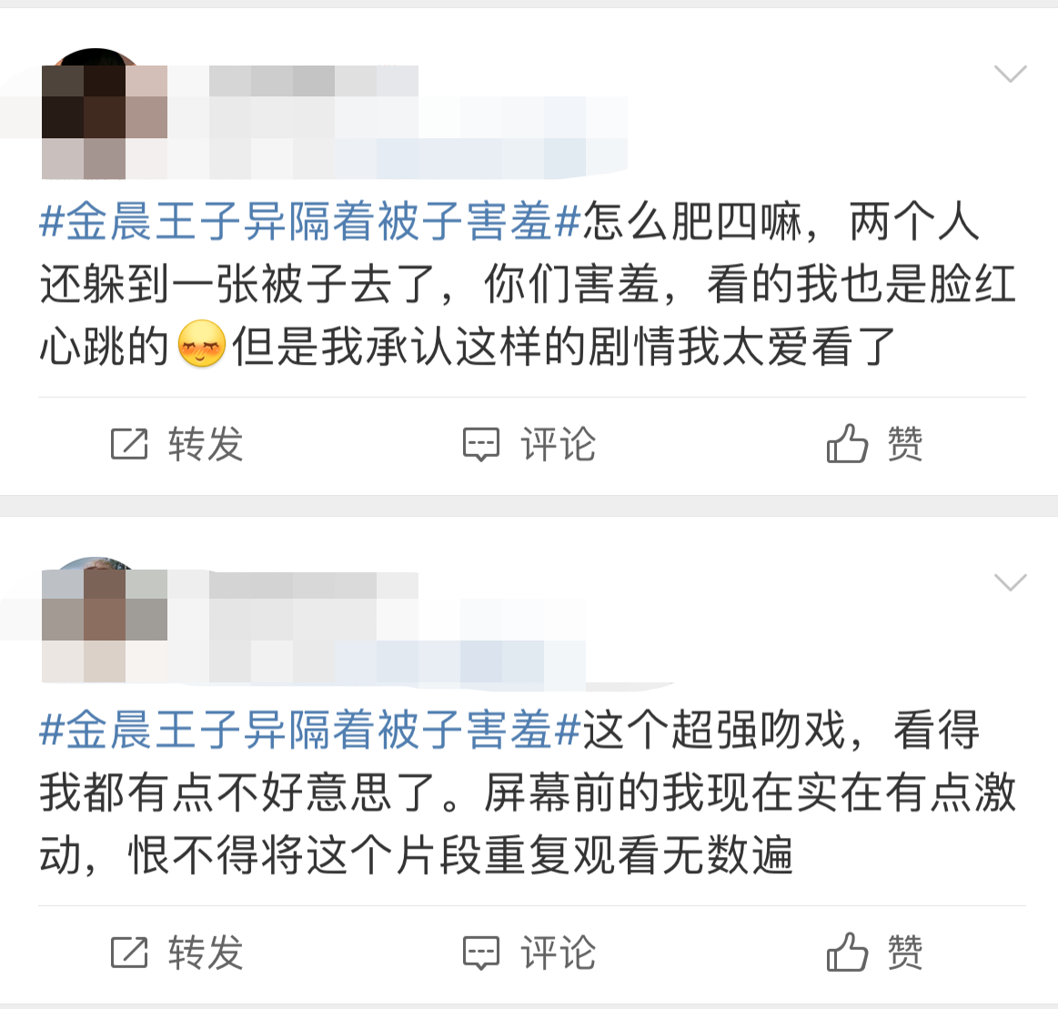 这样的画面都让网友直呼“这是我能看的吗,都躲在一张被子里了!看得脸红心跳!”“虽然看得不好意思,但这样的剧情我爱看”!
