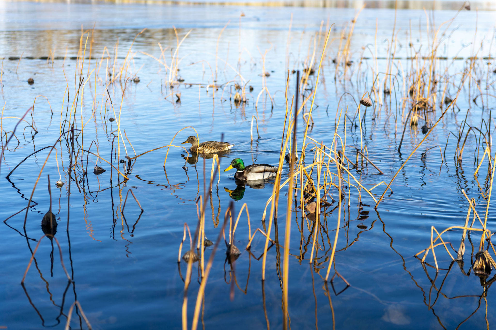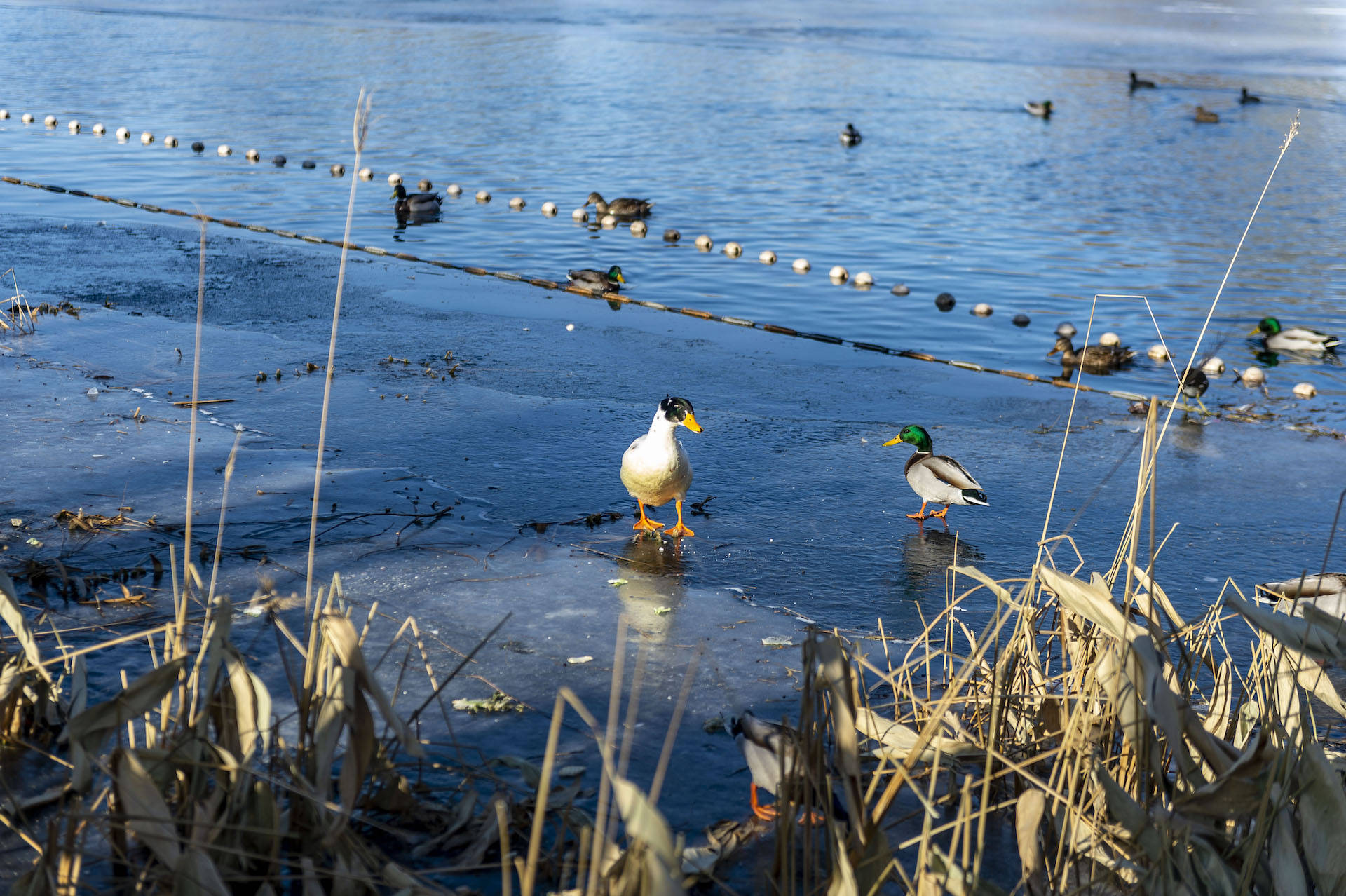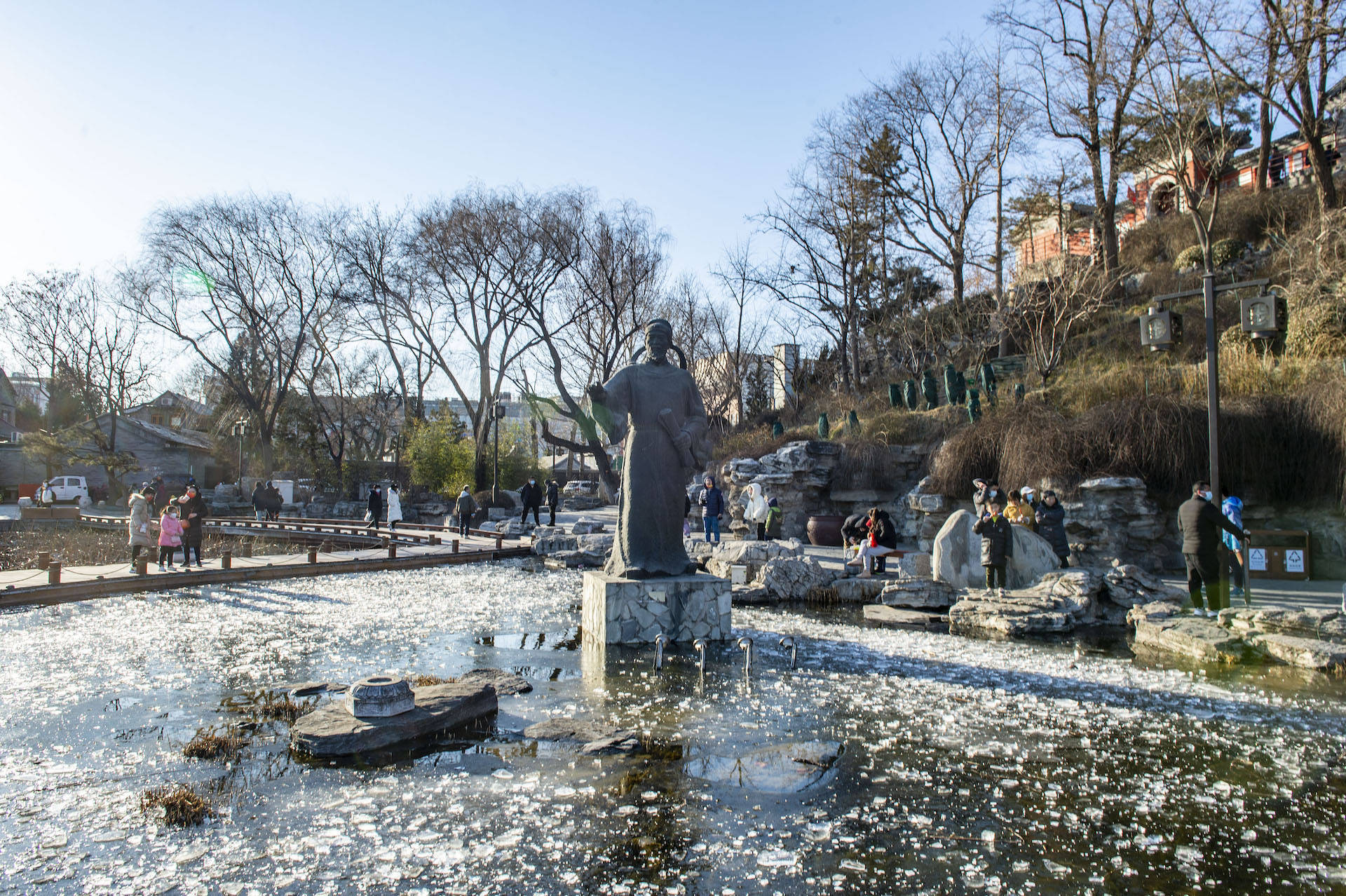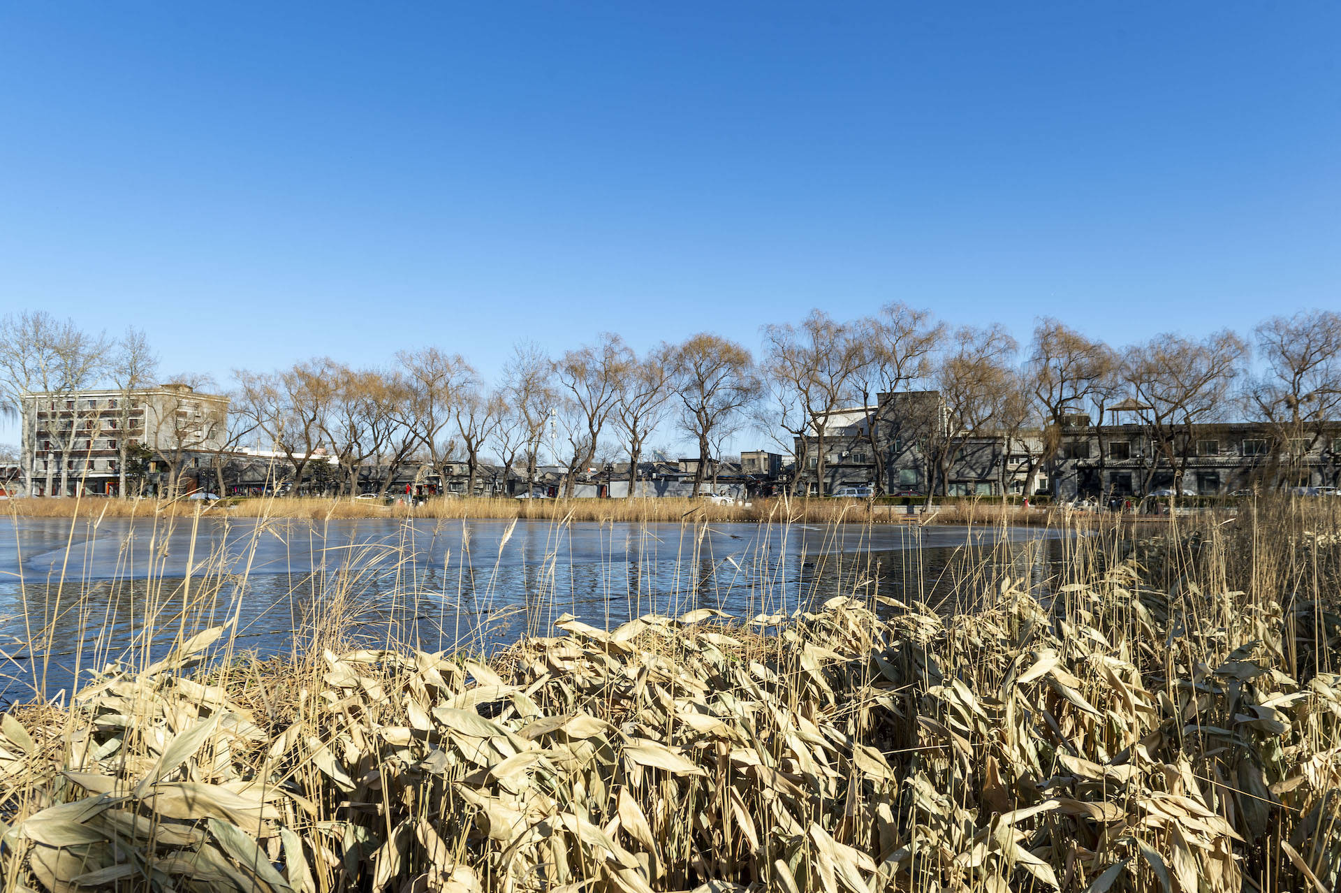 西海与前海、后海合称为“后三海”,现在这里是一片湿地公园,面积也不算小。初春时节,积雪未消,残冰还漂浮在水面上,芦苇还是枯黄的颜色,但“春江水暖鸭先知”,成群的野鸭已经在湛蓝的湖水中游弋了——这是春天的气息。