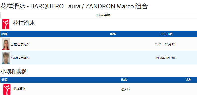 西班牙的女选手巴尔克罗是一名00后,今年20岁。男选手马尔科-桑德龙今年23岁,他从2004年在博尔扎诺开始接触花样滑冰运动,2020年大学毕业,获经济学学士学位。这次和搭档一起来到北京,参加花样滑冰双人滑的比赛。
