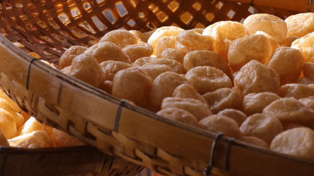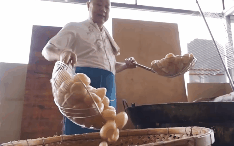 “眼睛要看颜色,耳朵要听声音,这样炸出来的鱼腐才会饱满,每一粒都起纱,中间没有馕。”