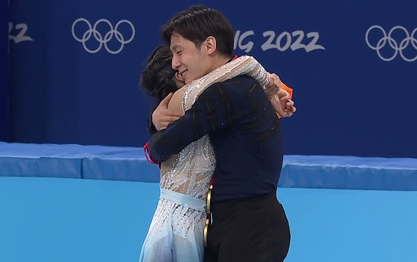 在表演结束后,隋文静就控制不住地哭了出来,一直到打分区都抑制不住自己,从头哭到尾。在分数出来的一刹那,隋文静/韩聪和申雪、赵宏博等中国教练团队拥抱在了一起。尤其是赵宏博,挥拳怒吼!