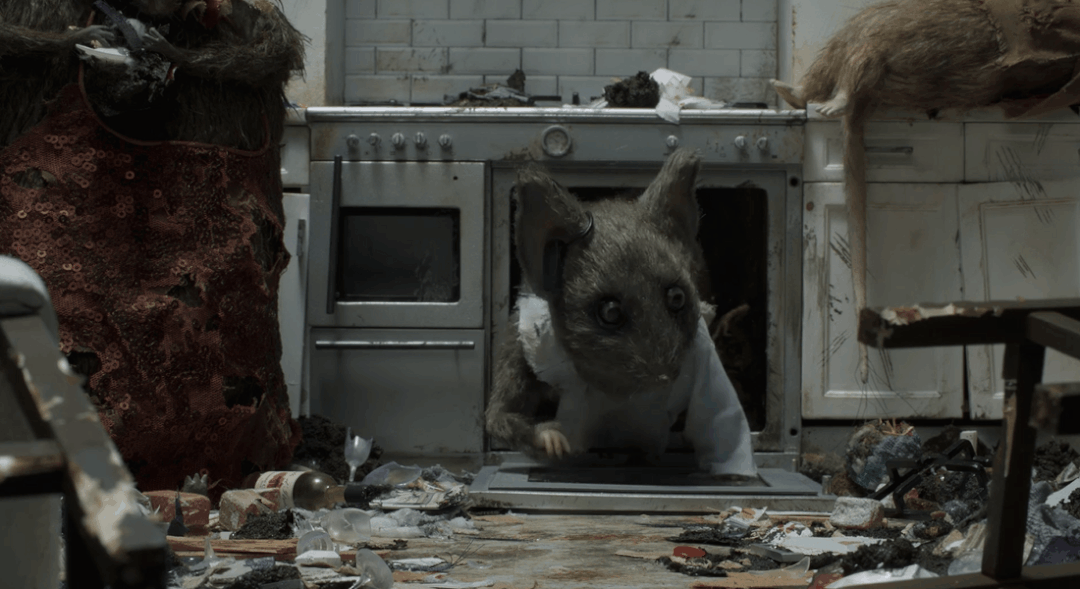 老鼠生动无比的皮毛,看房夫妇一族怪异的身形,都与精致明亮、奢华现代的房屋形成了鲜明对比,让人不寒而栗,头皮发麻。