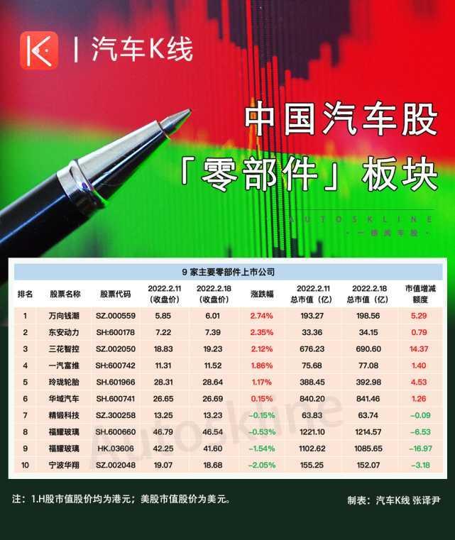 跌幅方面,宁波华翔以2.05%的周跌幅垫底该板块,截至2月18日收盘报18.68元/股,一周市值缩水至152.07亿元。