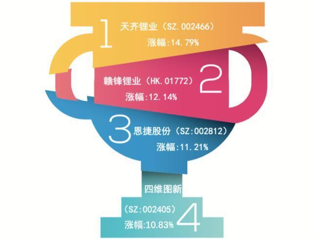 值得一提的是,该板块涨幅前六名的天齐锂业、赣锋锂业双股、恩捷股份、四维图新和当升科技霸榜了总榜单前六位。其中,排名前四的4支股票,涨幅均超过了10%。