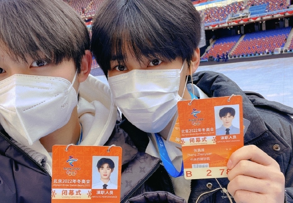 2月21日,丁程鑫、张真源分别发文分享冬奥会闭幕式现场照。