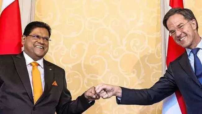 ▲现任苏里南总统单多吉与荷兰首相马克·吕特