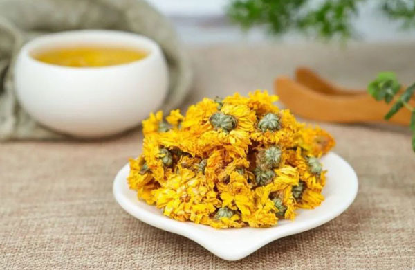 4、代茶饮。(1)菊花.有疏风清热、清肝明目、养肝降火的作用,能够减轻口苦、头痛、咽喉胀痛等表现。菊花富含维生素A,是维护眼睛健康的主要物质,也是中医医治各种眼疾的良药。菊花茶能让人头脑清醒、双目亮堂,特别对肝火旺、用眼过度导致的双眼干涩有较好的作用。(2)蒲公英。性寒,具清热解毒、消痈散结的成效,在中草药里属清热解毒类药物。但凡疮毒、疔毒等,以新鲜的蒲公英捣烂,外敷患处,或独自煎水内服,皆有良效。