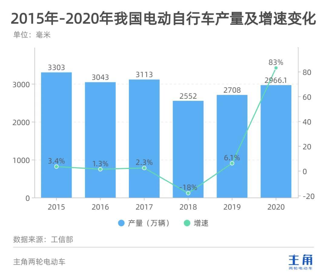 研究机构EVTank、伊维经济研究院联合中国电池产业研究院共同发布的《中国电动两轮车行业发展白皮书(2021年)》显示,2020年我国电动两轮车累计社会保有量达3.4亿辆。