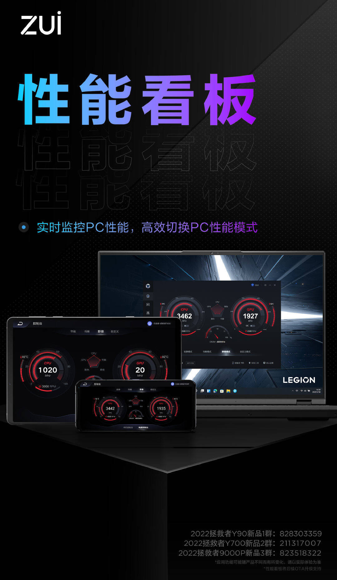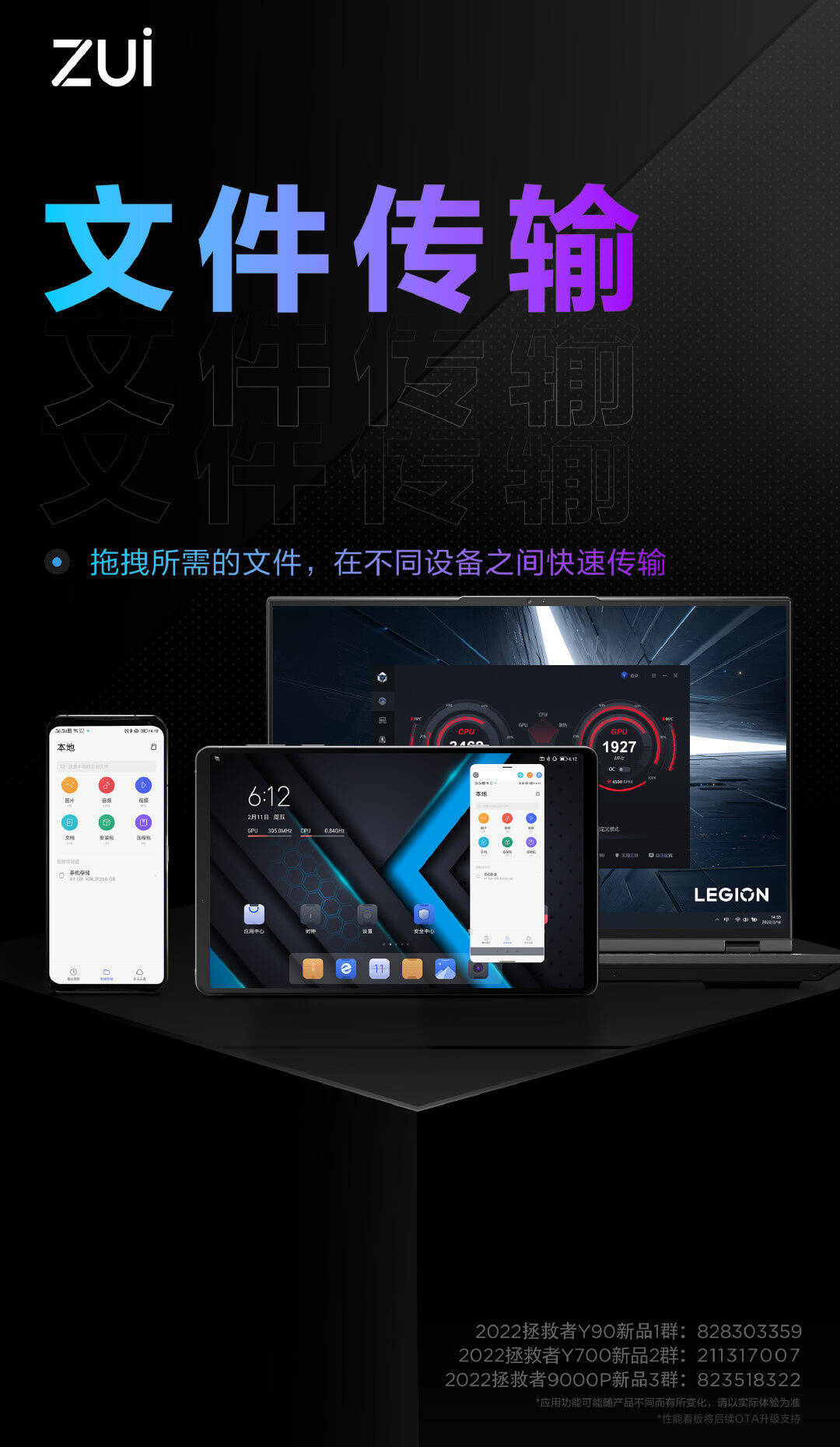 联想将于 2 月 28 日发布拯救者系列的 Y90 游戏手机、Y700 游戏平板和 Y7000P / 9000P 游戏本。在软件方面,联想表示三款设备将实现“超级互联”,拥有消息同步、性能看板、文件传输、设备投屏四大功能。