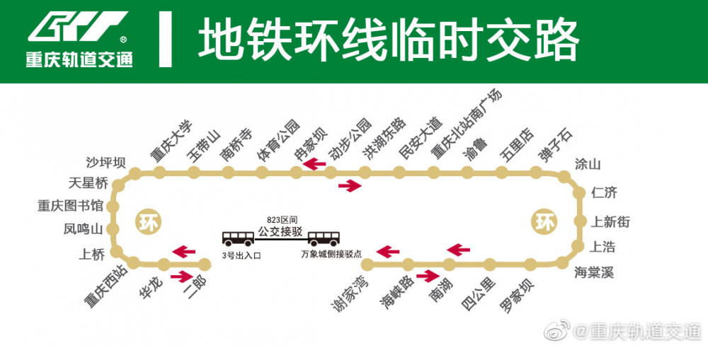 据@重庆轨道交通 消息,地铁环线谢家湾经鹅公岩大桥至海峡路区段于2月21日20:00恢复运营。谢家湾经奥体中心至二郎区段受外部环境影响,暂缓恢复运营。