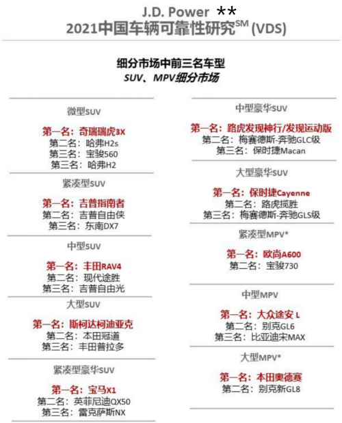 2021年11月4日,上海 — 全球领先的消费者洞察与市场研究机构J.D. Power(君迪)今日正式发布2021中 国车辆可靠性研究SM(VDS),研究显示,豪华车在可靠性方面的领先优势近三年来持续减弱,并且随着消费者拥车期加长,各类别抱怨数上升显著,拥车两年半后的抱怨数更是超过了主流车。
