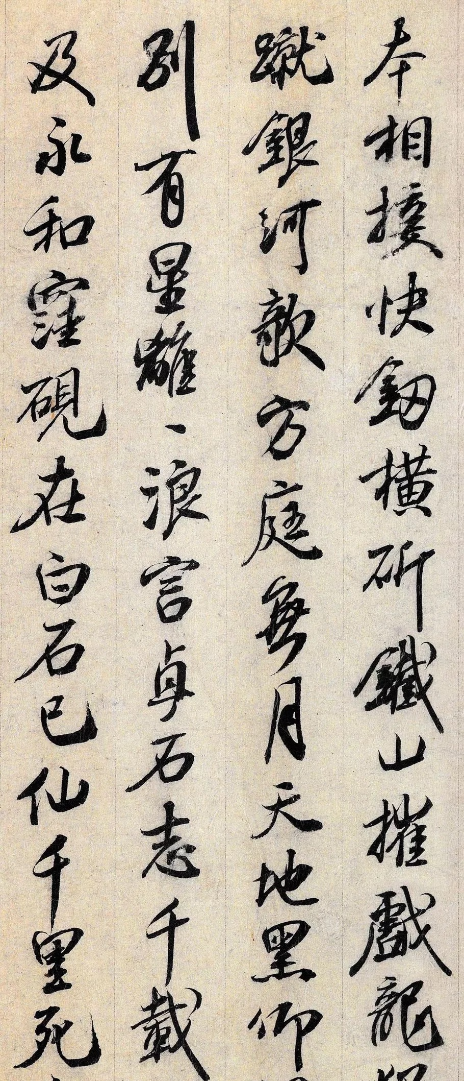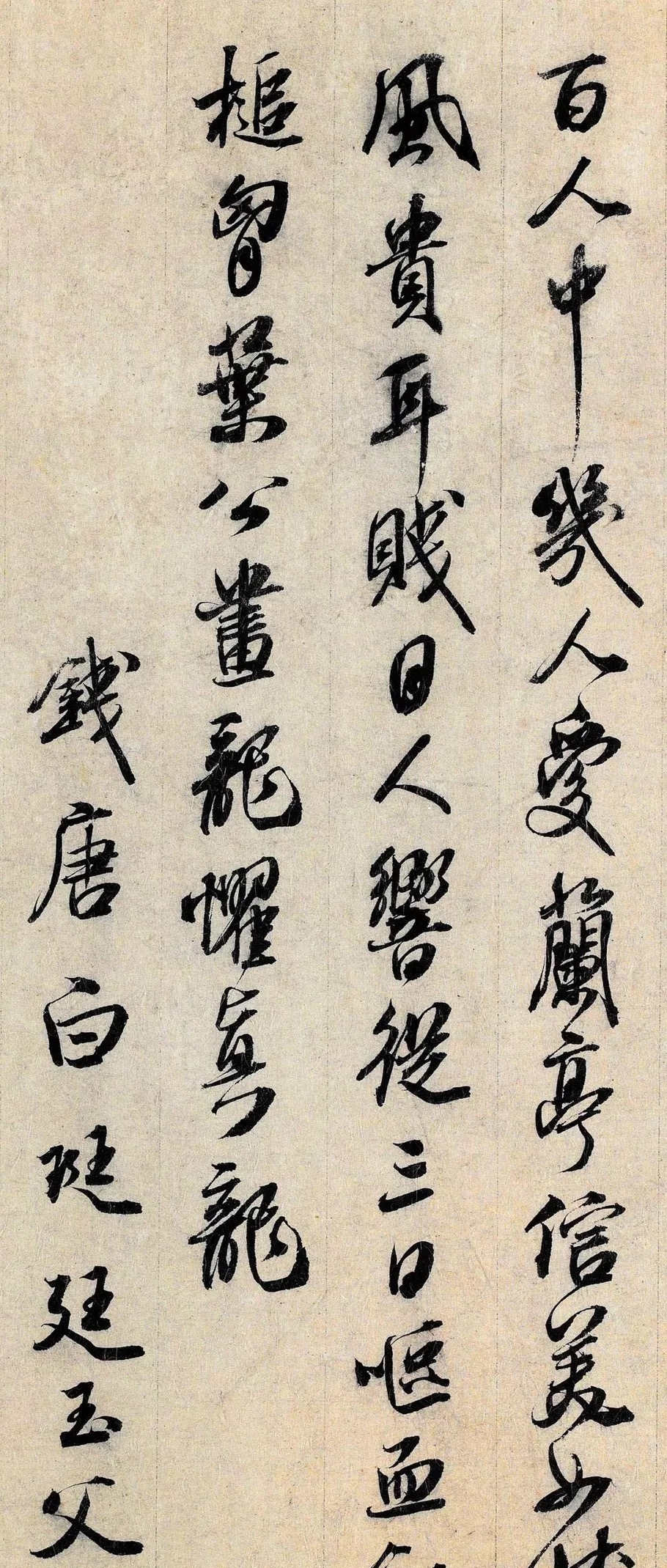 《赠莫维贤诗文卷》包括白珽、张翥、仇远、张雨、桑维庆五家书法。白珽行书“题莫景行西湖写真画”诗。行笔自然流畅,点画率意洒脱,书风苍劲质朴。从风格上看,是晚年所书。