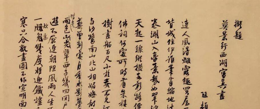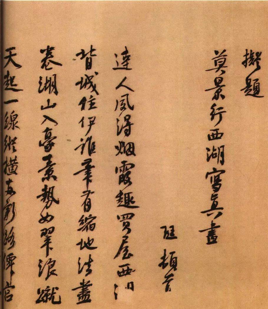 释文: 拟题。莫景行西湖写真画。珽顿首。达人夙得烟霞趣,买屋西湖背城住。伊谁笔有缩地法,尽卷湖山入豪素。势如翠浪蹴天起,一线纵横两新路。仙官佛祠何处所,时有朱楼出烟树。画船工百尺小于蚕,不见汀鸥与沙鹭。南山北山相媚妩,都是杖藜曾到处。月香水影梦东坡,睛光雨色颦西子。几回闭户成卧游戏,不厌连朝阻风雨。人生百年一炊黍,几度将迎铁炉步。岁寒只合观画图,不作宣明面相顾。