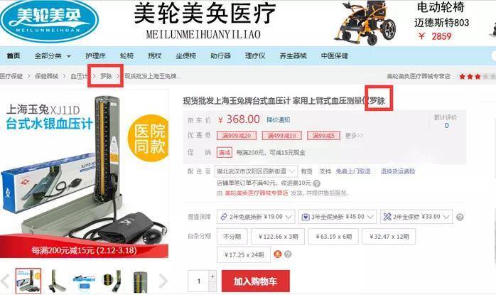 开甲财经注意到,在京东健康搜索“血压计 罗脉”发现,京东“美轮美奂医疗器械专营店”还在销售带“罗脉”品牌字样的血压计(实际品牌为上海玉兔)。
