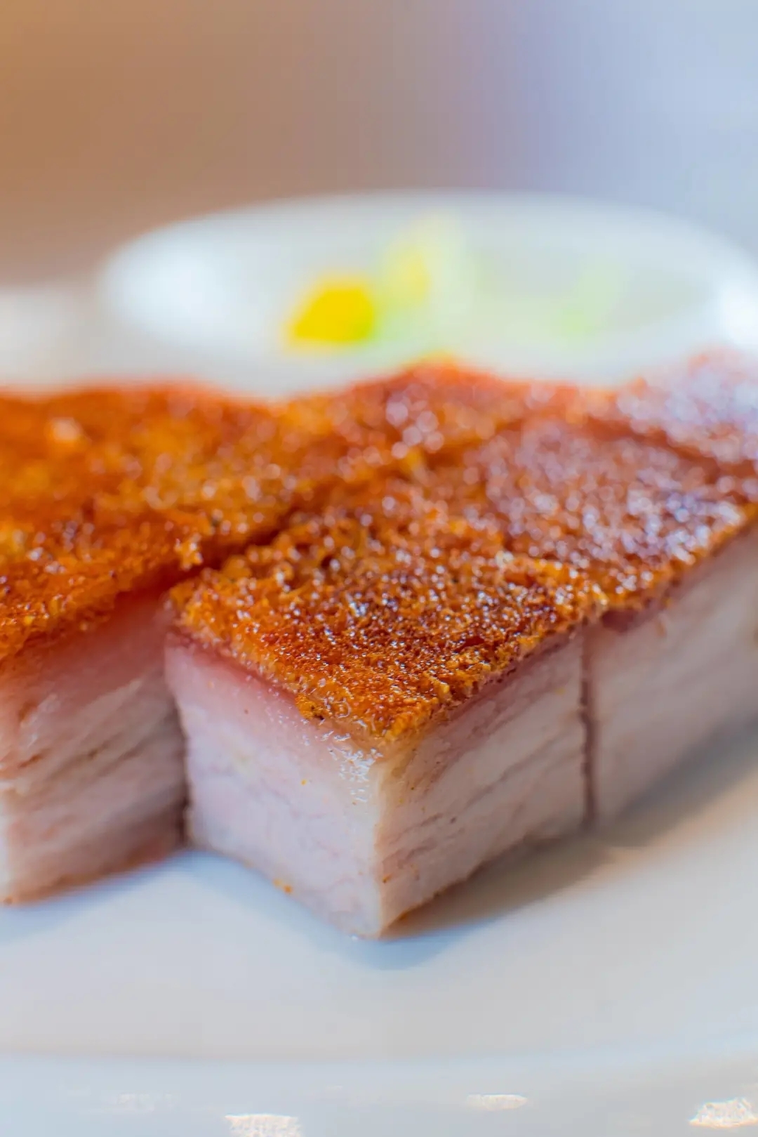 善烹粤菜的御口福,做起广府菜得心应手:招牌的烧肉,酥化得稍纵即逝,想重温美味,只能再夹一块;脆皮牛肩骨用卤水入味,又烤又炸,香鲜嫩脆,城中第一。惠来的肉卷,又叫“广章”,这是什么文章呢?原来,这又是一次以讹传讹的事故,它的真实名字应该叫“卷煎”,把食物用腐皮卷起来再用油煎,这一技法不仅仅指肉卷,萝卜丝卷也可以叫卷煎,潮汕话“卷煎”与“广章”谐音,错误就此酿成。但脆皮牛肩骨与“广章”的搭配不会错,两个配酒神物出现,不喝多几杯,都不是正常人。