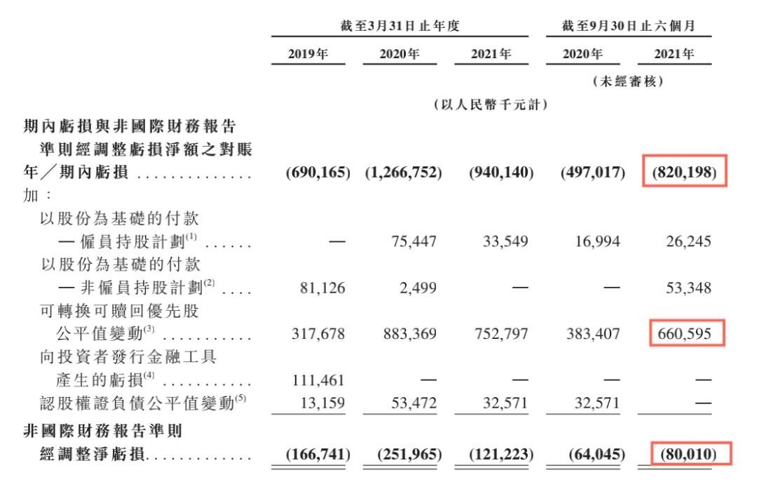 以截至2021年9月30日的六个月内的数据来看,北森到底是亏了8.2亿还是0.8亿,7.4亿的差额是哪来的?