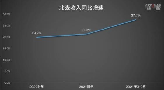 1月10日,北森招股书披露,其2019-2021财年(截至3月31日)收入分别为3.82亿元、4.59亿元和5.56亿元,每年维持着20%左右的增速,且增速在加快。