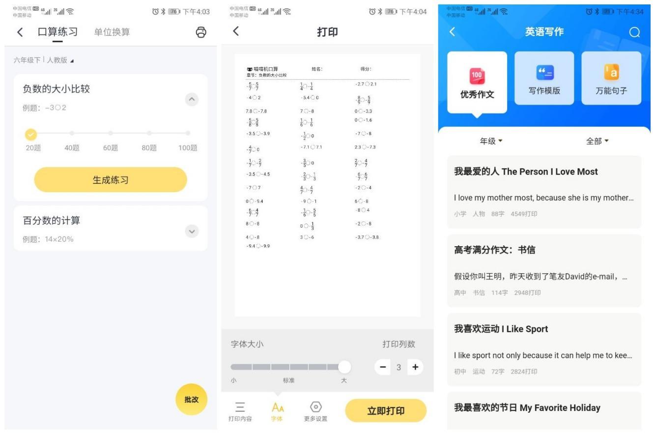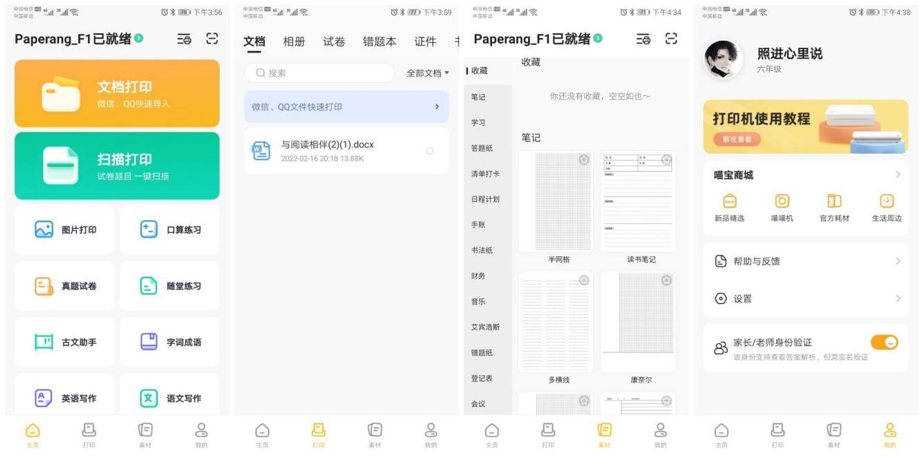喵喵机F1家用学习打印机有着作业帮强大的背书,尤其是在学习资源上秒杀市面上一切打印机了。毕竟其覆盖小初高全学科内容作业帮3.5亿题库,90余万套全国各地真题试卷,100余万套中英优秀作文及素材,就冲这些资源也可以说是喵喵机F1家用学习打印机的学习属性也是无可比拟了!在APP里的有些常用的功能还是非常不错的比如文档打印、扫描打印、图片打印、真题试卷、口算练习、语文学习和外语学习众多功能选择。