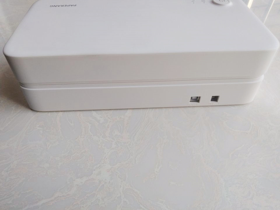 在机身的背部则分别是连接电脑的插孔,以及电源插孔,值得一提的是喵喵机家用学习打印机F1除了可以用手机操作外,还可以与电脑进行连接。
