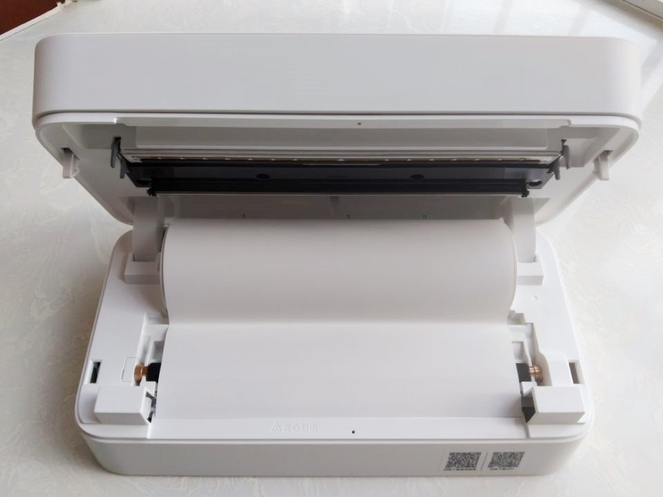 打开喵喵机家用学习打印机F1盖子后,会发现里面已经配备了热敏纸,而在安装热敏纸上也是非常的简单。作为一款热敏打印机,喵喵机家用学习打印机F1配备了非常环保的热敏纸,热敏纸不含双酚-A,还通过了ROHS环保认证,因此在安全上是非常信赖的。