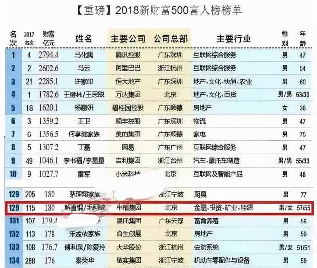 殊不知,这个“神秘”的丈夫,原来家底这么优渥。2018年胡润富豪榜上,毛阿敏跟她的老公解直锟并列排在一起,那时候,他们的财富累计已经有180亿之多了。