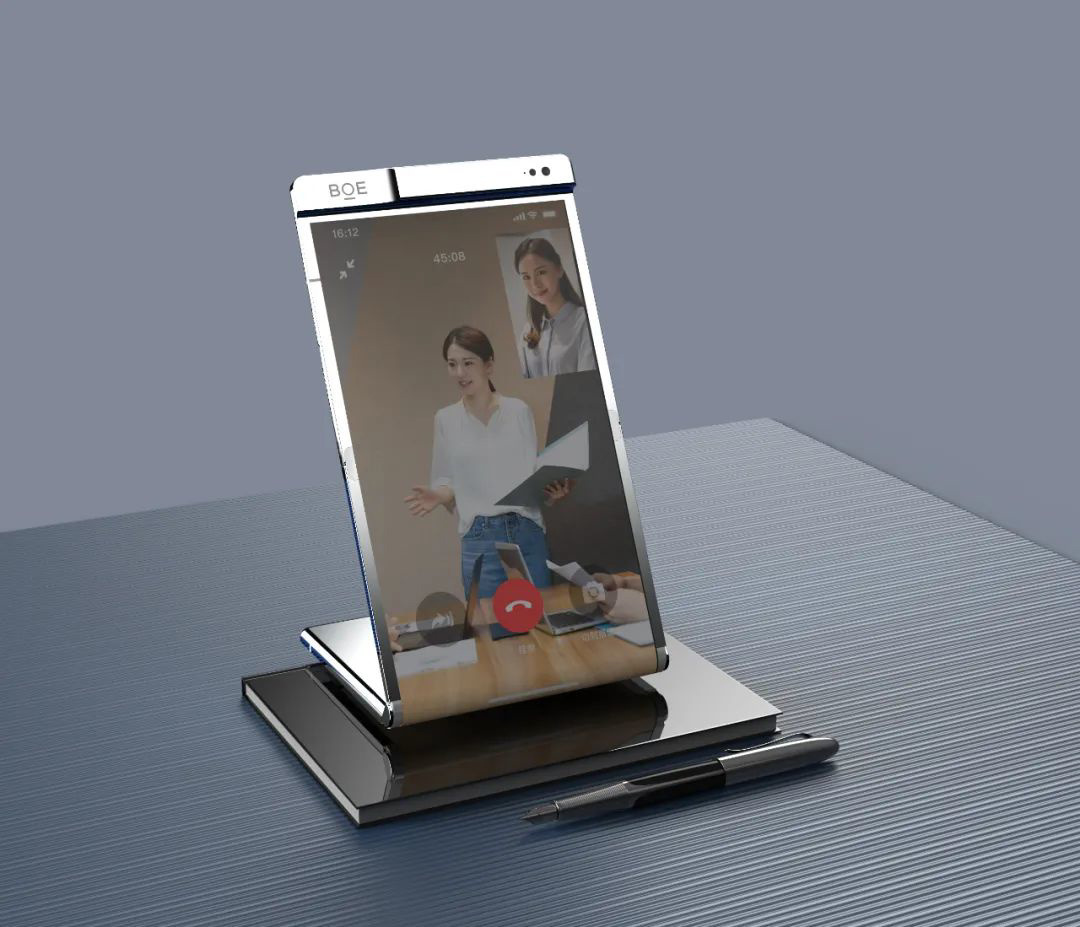 当对柔性屏进行第一段收纳时(仅外折),横向工作平台可变身为立式会议和视频通话平台,适合商务办公;