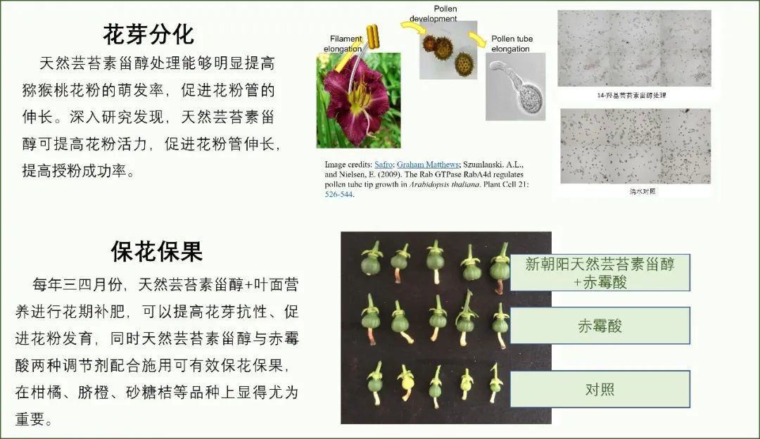新朝阳天然芸苔素甾醇活性更高,用量少效果好,在保花保果上应用效果出色,能有效减少落花落果,提高座果率。