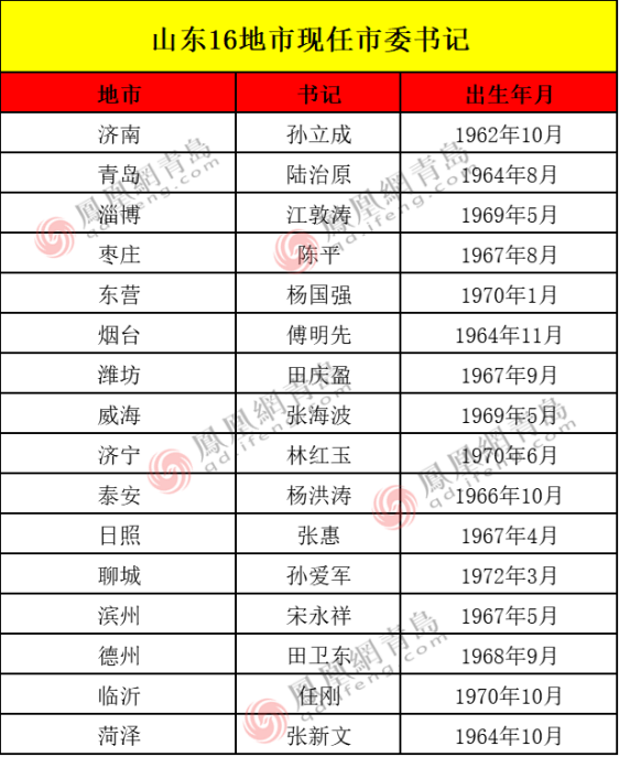 现山东16地市“一把手”最新名单如下: