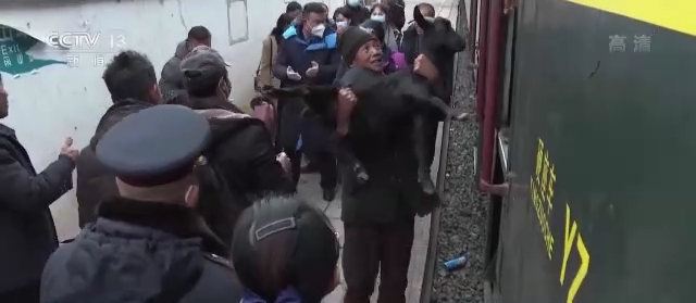 上午10:26,列车到达冕宁站,在列车工作人员的帮助下,吉克木各将羊群赶下了行李车厢。