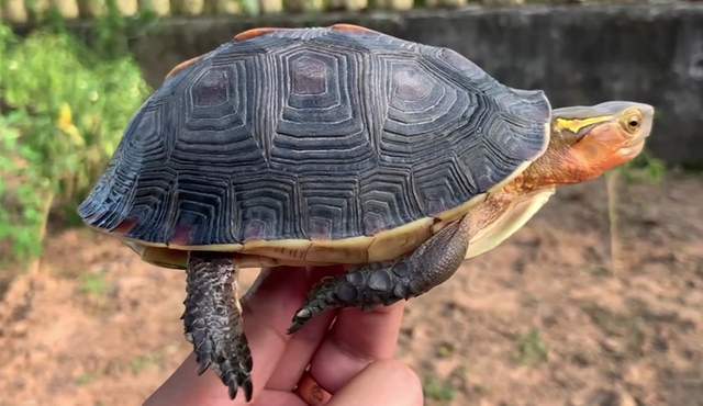 关于黄缘闭壳龟的形态特征网上有很多描述,这里小编给大家看看图片比较直观。当黄缘闭壳龟受到威胁或者攻击的时候,它会把四肢和头部缩到壳里面,连尾巴都不放过,都可以用壳保护起来。和其他乌龟不同的是,黄缘闭壳龟是可以闭壳的,黄缘闭壳龟的腹甲是分为两部分的,韧带发育成熟的龟可以关闭腹甲的前半部分壳形成闭壳。不要小看这个闭壳,这个也是一种攻击手段,比如黄缘闭壳龟也号称克蛇龟,而捕猎蛇大部分是用闭壳夹住蛇头完成最后的捕猎动作的。