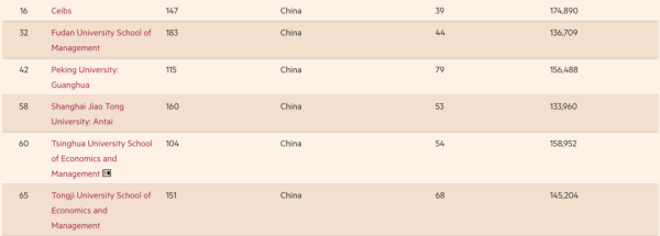 在此次排名中,中国内地商学院表现不俗,共有6所商学院入选百强排行榜。