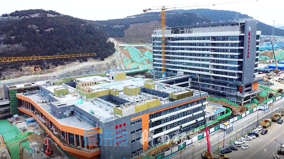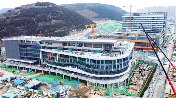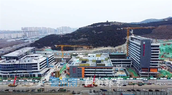 2月18日,在经十路南侧、汉峪金谷东侧,济南市中心医院东院区项目的门诊楼和病房楼已经全部封顶,施工进入外墙装饰和室内装修阶段,建筑外墙已经悬挂上“济南市中心医院”的字牌。