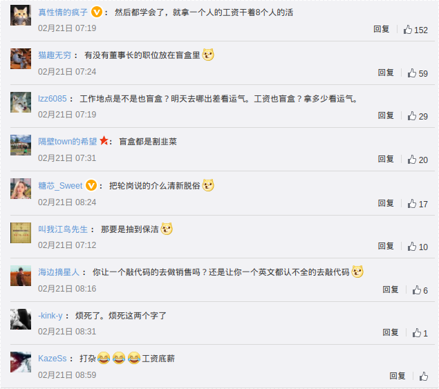 不过小天很好奇的是,盲盒里都有隐藏款,那“盲盒岗位”的隐藏款,会是公司老板吗?