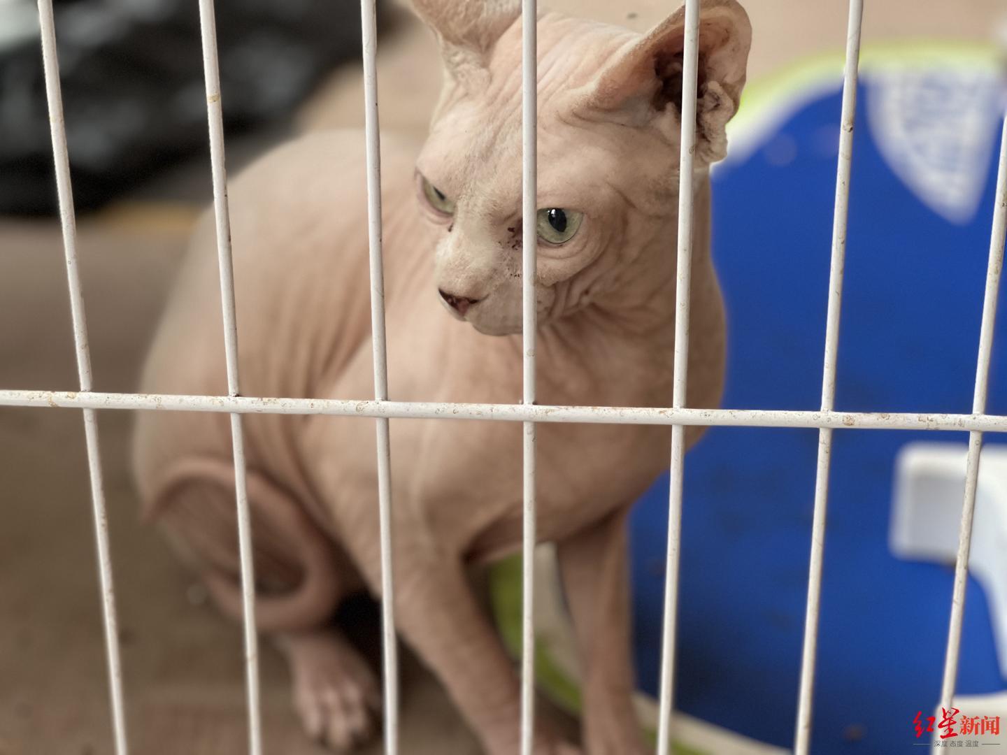走进猫笼后,现场工作人员按照居民的电话指导,投放了其预先购买的猫罐头和猫粮,并更换了饮用水。