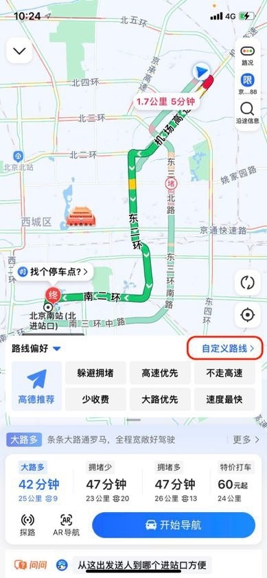 现在,如果驾车人有自己更熟悉更喜欢的路段,通过高德地图“驾车”页面,输入起点和终点后,在“路线偏好”设置中点击“自定义路线”,就可以自己动手DIY出行路线了。
